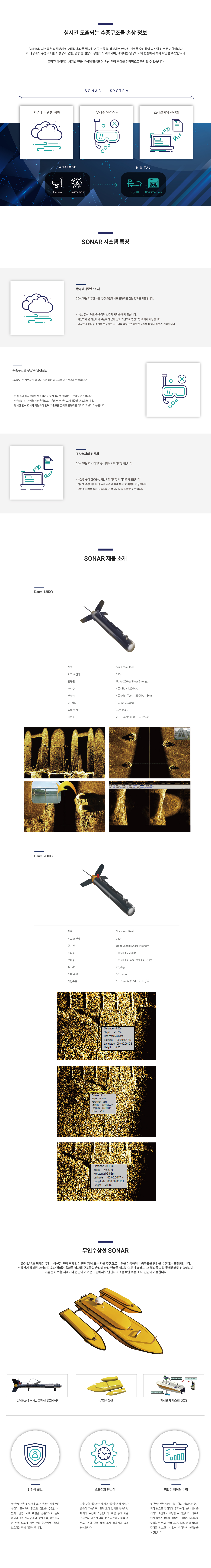 수심, 탁도, 유속 등의 환경적 제약을 극복할 수 있으며 정확도를 높여 수중구조물 유지관리의 안전성과 효율성을 동시에 향상시키는 수중 안전진단 솔루션입니다.